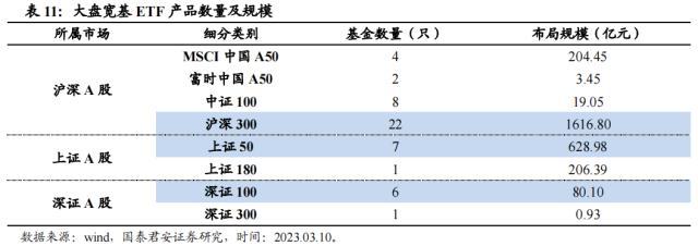 旗下ETF产品线布局较全、有代表性的规模较大的单只ETF产品、人员配备完善有单独的指数部门,典型的公司例如华夏基金、易方达基金等。