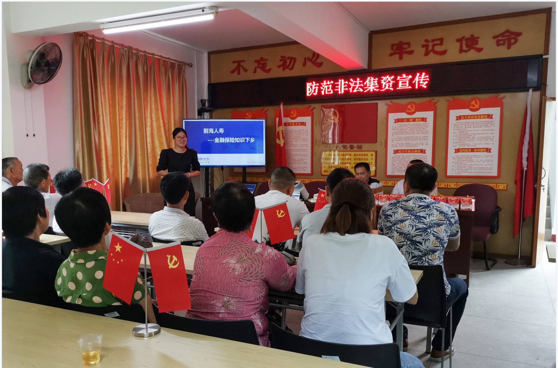 前海人寿梅州分公司则通过“金融知识下乡”的方式开展“防范非法集资”宣传。6月28日,前海人寿梅州分公司走进梅州市西阳镇塘青村开展主题为“不忘初心 守护美好”金融知识下乡活动,前海人寿广东分公司授权讲师、梅州分公司本部营业区经理陈宝华等讲师通过扎实的金融知识和生动的案例向村民讲述“如何远离非法集资”,进一步提高广大乡村消费者防范金融风险、正确使用金融服务的意识,让金融知识走进乡村居民家中。