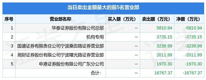 从龙虎榜公布的当日买卖数据来看,机构合计净买入2055.81万元。宁波桑田路、申港广东分等知名游资榜上有名。