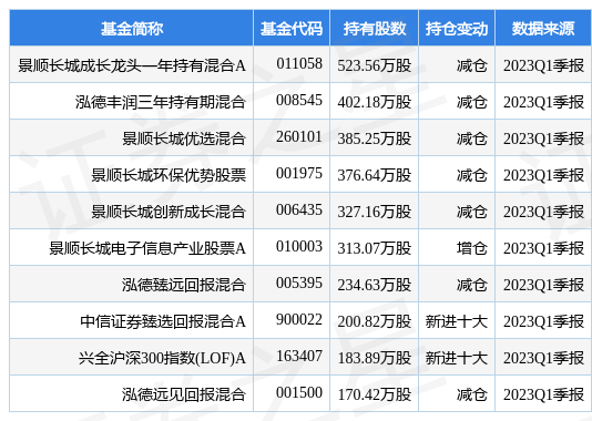 根据2023Q1季报公募基金重仓股数据,重仓该股的公募基金共32家,其中持有数量最多的公募基金为景顺长城成长龙头一年持有混合A。景顺长城成长龙头一年持有混合A目前规模为53.29亿元,最新净值0.848(4月25日),较上一交易日下跌1.7%,近一年上涨10.84%。该公募基金现任基金经理为杨锐文。杨锐文在任的基金产品包括:景顺长城优选混合,管理时间为2014年10月25日至今,期间收益率为241.99%;景顺长城环保优势股票,管理时间为2016年3月15日至今,期间收益率为215.3%;景顺长城创新成长混合,管理时间为2019年10月17日至今,期间收益率为60.18%;景顺长城成长领航混合,管理时间为2020年5月28日至今,期间收益率为25.67%。