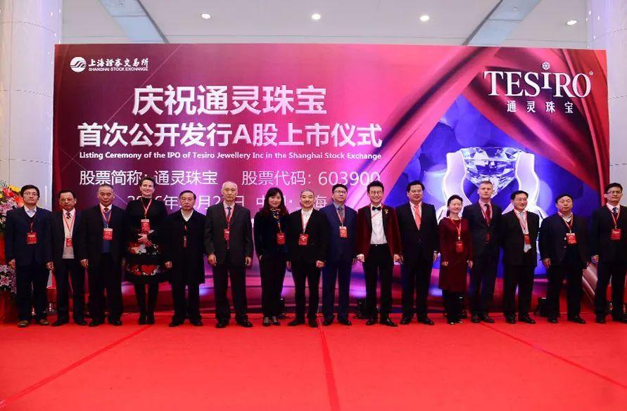 通灵珠宝上市仪式,左8为马峻,右7为沈东军