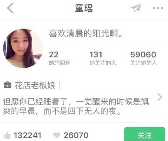 “但愿你已经睡着了,一觉醒来的时候是飒爽的早晨,而不是四下无人的夜。”从童瑶的个人简介中,对其文风可略知一二。资料显示,童瑶粉丝59806人,毕业于复旦大学经济学系。