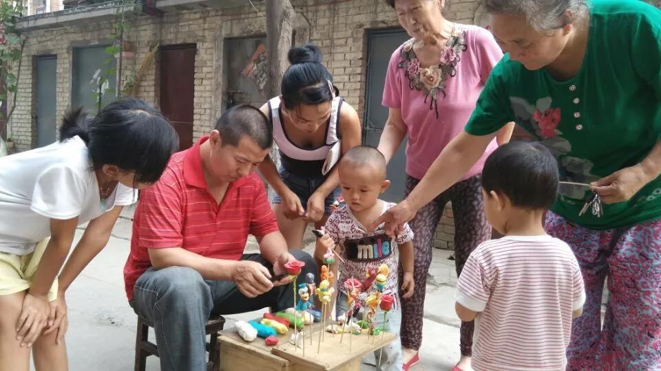 1979年,魏红刚8岁,从简单的小面人开始捏起,一个寿星的头部,常常要捏上300多遍。再后来,他跟着爷爷进村入户耍手艺挣钱,十里八村,走街串巷。