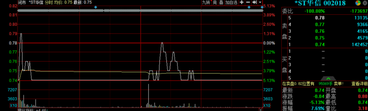 按照今天0.74元的收盘价,即便*ST华信在未来4个交易日连续涨停,都将触及连续20个交易日收盘价低于1元的面值退市规定。*ST华信将是A股市场史上继中弘股份、*ST雏鹰之后,第3家“面值退市”公司。