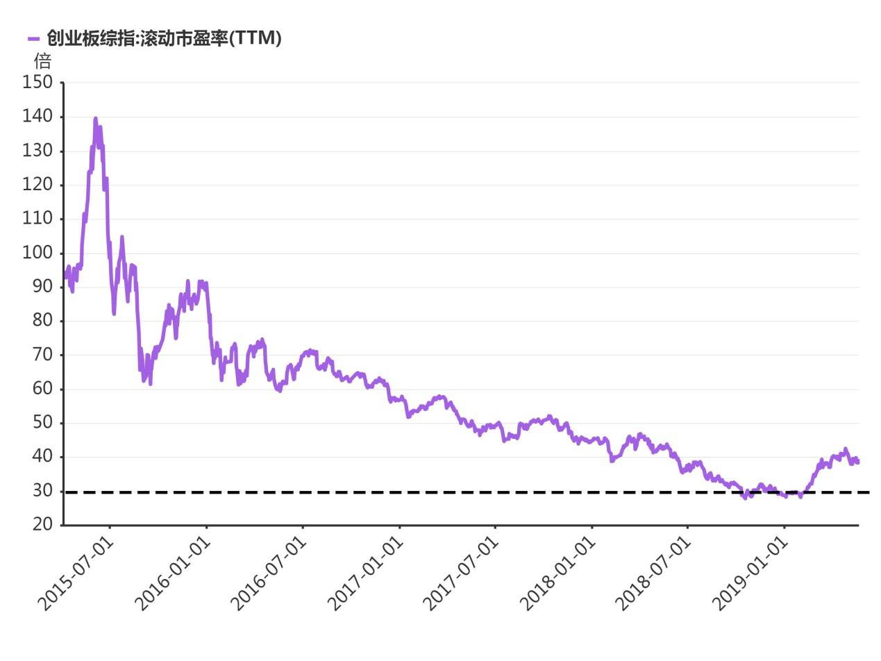 2018年,A股一路下跌,创业板指数更是跌的一塌糊涂,比2015年股灾时候还惨,最低跌至1184,相较于2015牛市最高点下跌了70%,估值PE一度低到30以下。2018年底政府出台维稳股市政策以后,截至今年,创业板市值翻了3倍,赚钱效应冠绝全球。