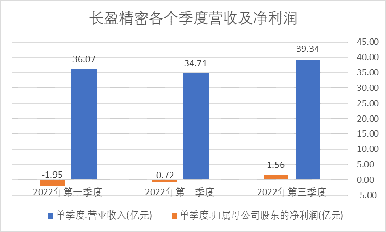 10月24日晚,长盈精密披露三季报,今年第三季度公司实现营业收入39.34亿元,同比增长38.32%;实现归属于上市公司股东的净利润1.56亿元,同比扭亏。