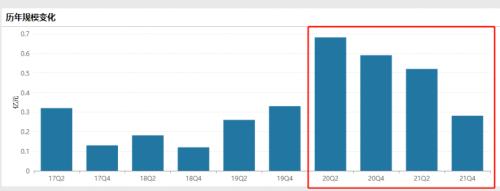 不过,该只基金总份额从去年末的1336万份,增加到2022年一季末的2471万份,单季度份额增长85%。同期,基金规模从0.28亿元增至0.42亿元,增幅50%。不过,从该只基金2020年中报0.68亿元规模高点后,到基金清盘日,该只基金规模整体处于震荡下跌的通道。