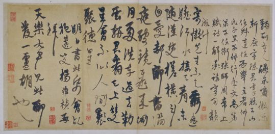 王冕诗作风格多样,除了以忠君爱民、去恶拔邪为主旨的质朴恳切、豪雄俊伟风格外,也多有寄情山水、畅叙幽怀之作。如《云门山图》:“十年不到云门寺,忽见若耶溪上山。落叶不随流水去,长松只在白云间。当年王谢已寂寞,终古林泉更往还。所喜二灵多道气,扶藜时复叩柴关。”《漫兴》之二:“中天积翠郁层阴,雪瀑邀飞落远岑。白月夜分双鹤舞,清风时听万松吟。放怀尽可从诗酒,行乐何须论古今。我欲与君飞两舄,题诗刻竹满山林。”其他如《湖上书所见》《林壑亭》《村居》《竹西轩》等,均以佳山秀水为场景,细致刻画优游于松竹林泉自得其乐的隐士形象,描绘出白云千载、清风万里的诗境,既是其陶冶情操、托物寄情之所,也是他艺术灵感的涵育生发之地。