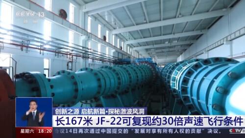 总台央视记者 帅俊全:这里是空天飞行高温气动全国重点实验室,在我身旁就是刚刚通过验收的JF-22超高速激波风洞,它的全长达到了167米,其各项性能指标可以说是国际领先,也为我们国家的空天往返系统以及超高声速飞行器研制提供了有力支撑。