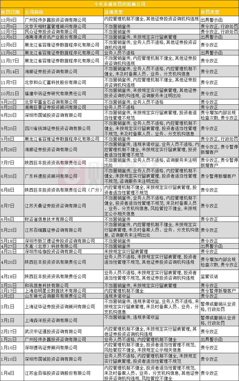 细数近三年的处罚情况民众投顾相关问题层出不穷、屡罚屡犯。