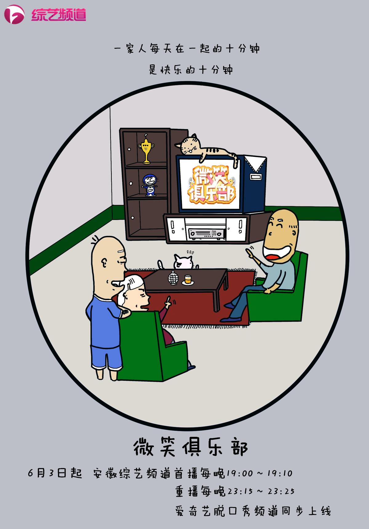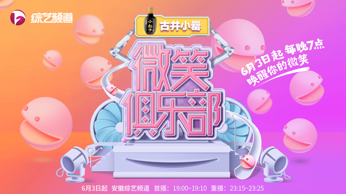 由人手一枚的古井小罍欢乐助力,安徽乐贯满盈文化传媒有限公司出品,安徽金牛影视技术有限公司联合出品的脱口秀节目《微笑俱乐部》,将从2019年6月3日起登陆安徽广播电视台综艺频道,首播时间每晚19:00-19:10,重播每晚23:15-23:25。节目也同步在爱奇艺脱口秀频道全网独家首发。