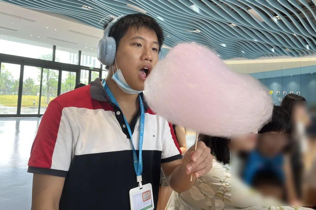 随后的园游会中,特别为孤独症孩子、普校孩子以及高校志愿者设置了融合摊位进行娱乐互动、职业及创业体验。他们不仅可以作为客人参观购物,同时可以成为摊主推销产品,每个人的角色是多元的,每个场地都是融合的: