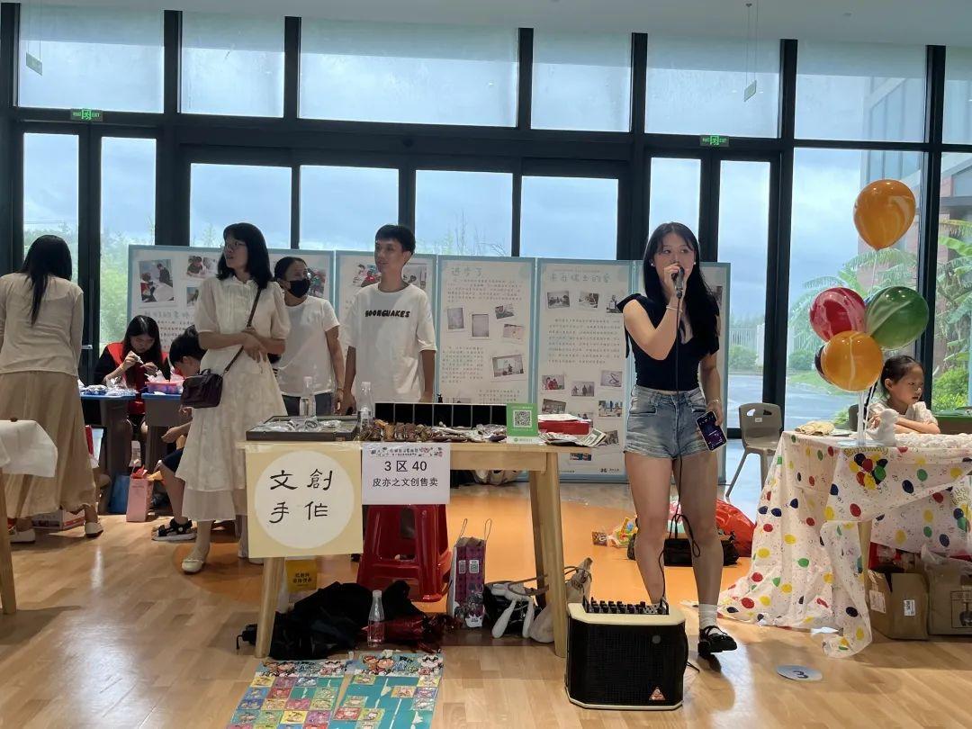 活动中,欢声涌动:有的孩子大声招呼客人:快来看看、不要错过!有的孩子开心地在各个摊位前体验,还有来自莆田学院、湄洲湾职业技术学校等各院校的哥哥姐姐们带来律动舞蹈、优美歌声,为所有参与活动的大朋友、小朋友都带来了欢乐。
