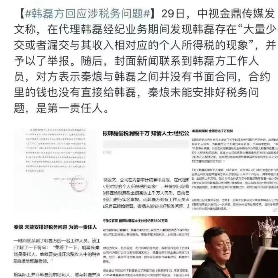 令所有网友没有想到的是,韩磊有一天也会被曝黑料,因为韩磊被前经纪人曝光税务问题。