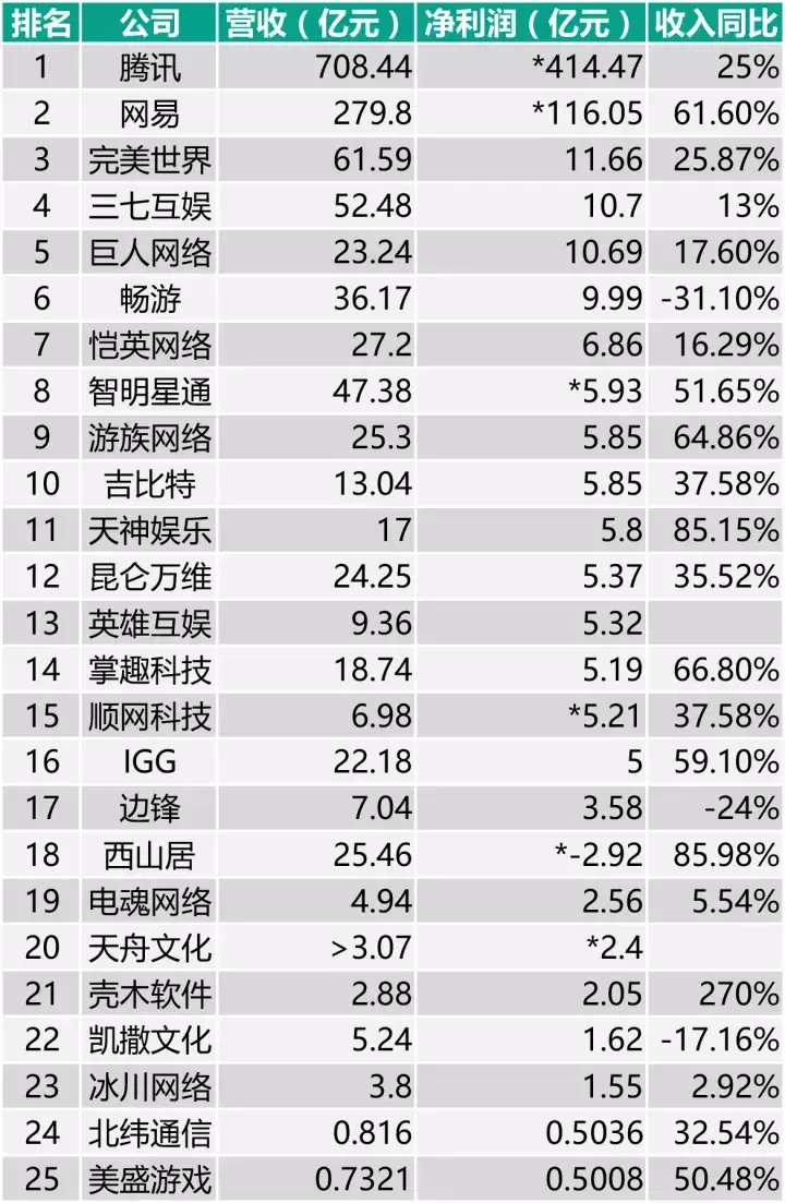 注:*为集团净利润。因为部分公司不会披露游戏业务的净利润表现,特此备注。